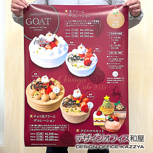 クリスマスケーキのチラシ(B5サイズ)と、店内用ポスター(B2サイズ)を今年も制作させていただきました。