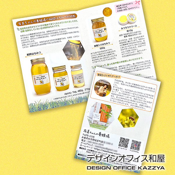 前回に続き、兵庫県稲美町にある「有美ちゃんの養蜂場」様のパンフレットのご紹介です😊
